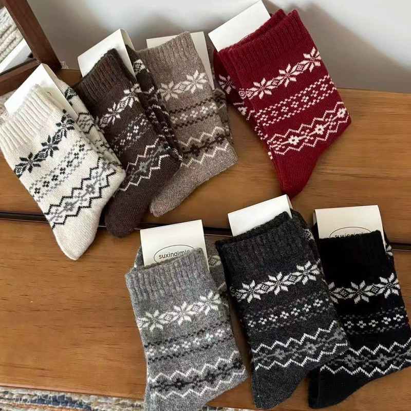 全店满15包邮秋冬袜子女复古中筒袜保暖加厚羊毛袜潮外穿雪花潮袜