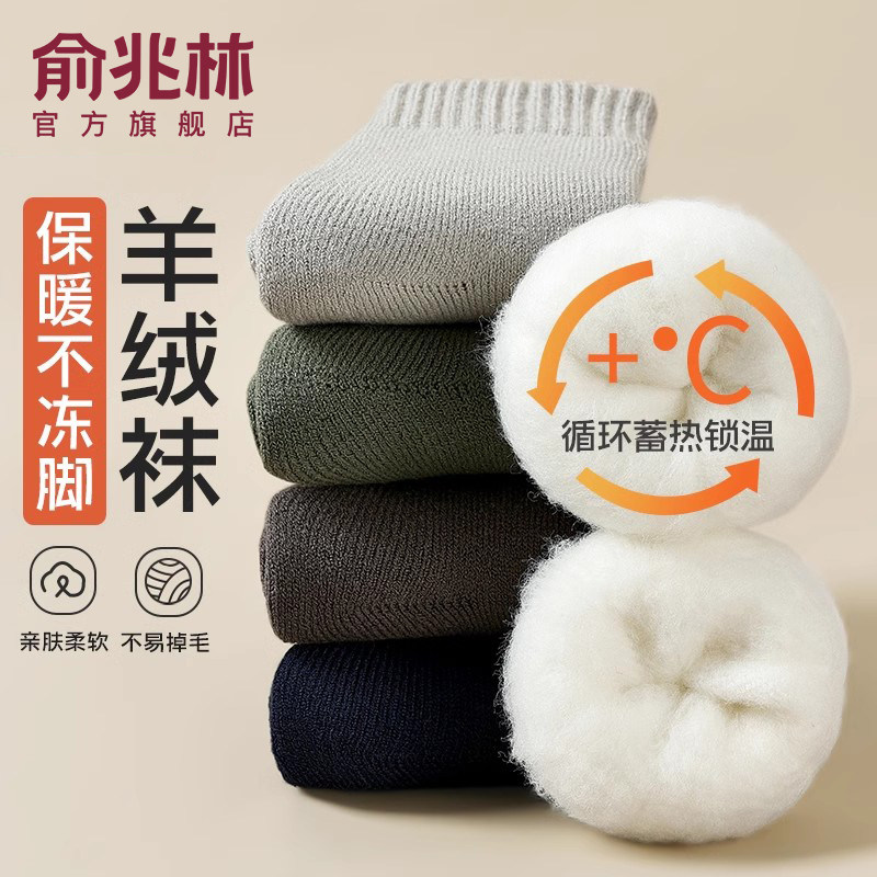 羊绒袜子男款秋冬保暖中筒袜加绒加厚羊毛袜冬天男士超厚睡眠长袜