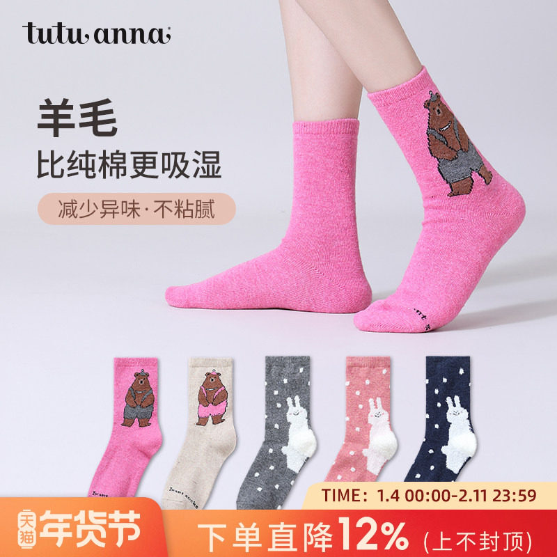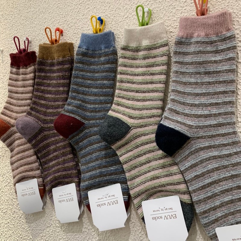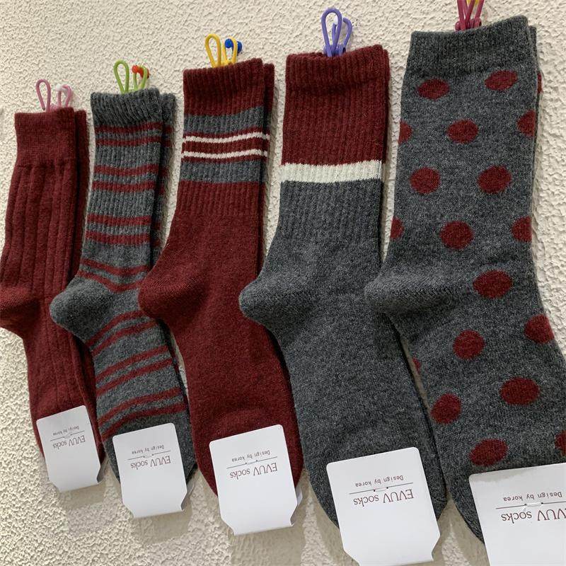 安可拉红色加厚羊毛袜子女东大门冬季新款波点条纹保暖柔软中筒袜