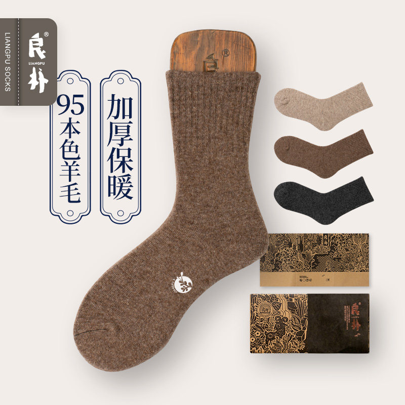 良朴冬季加厚羊毛袜男长袜加绒中筒袜男士户外徒步厚保暖毛圈袜子