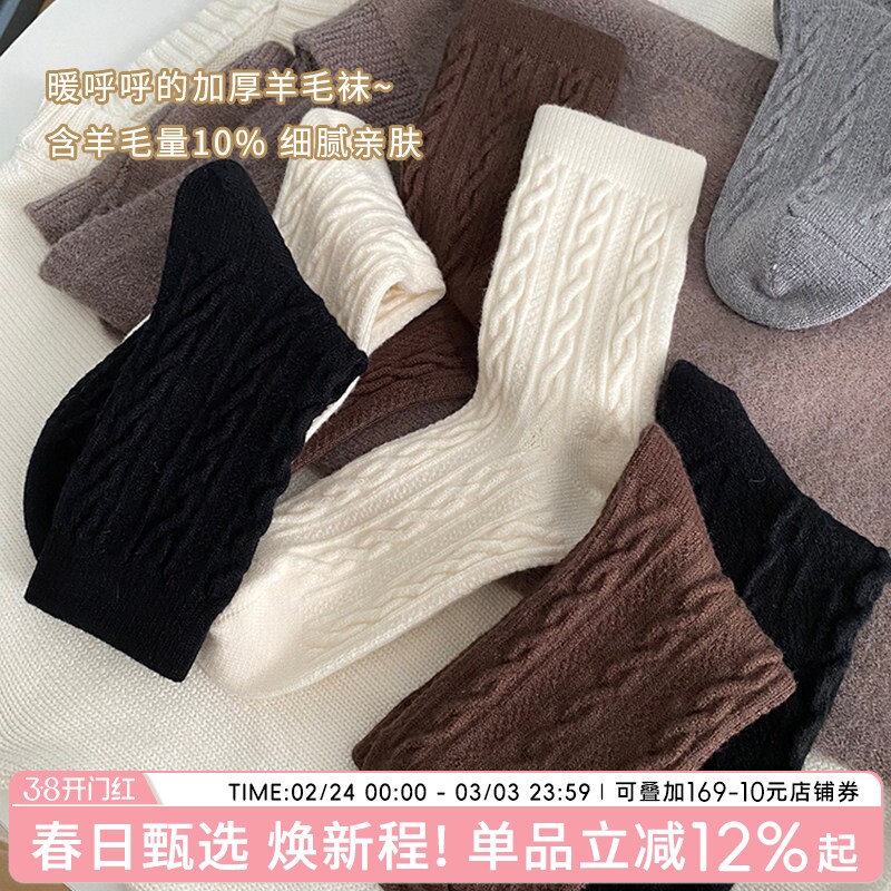 性价比贼高 秋冬中筒女袜加厚羊毛袜女复古风保暖袜上脚好看袜子