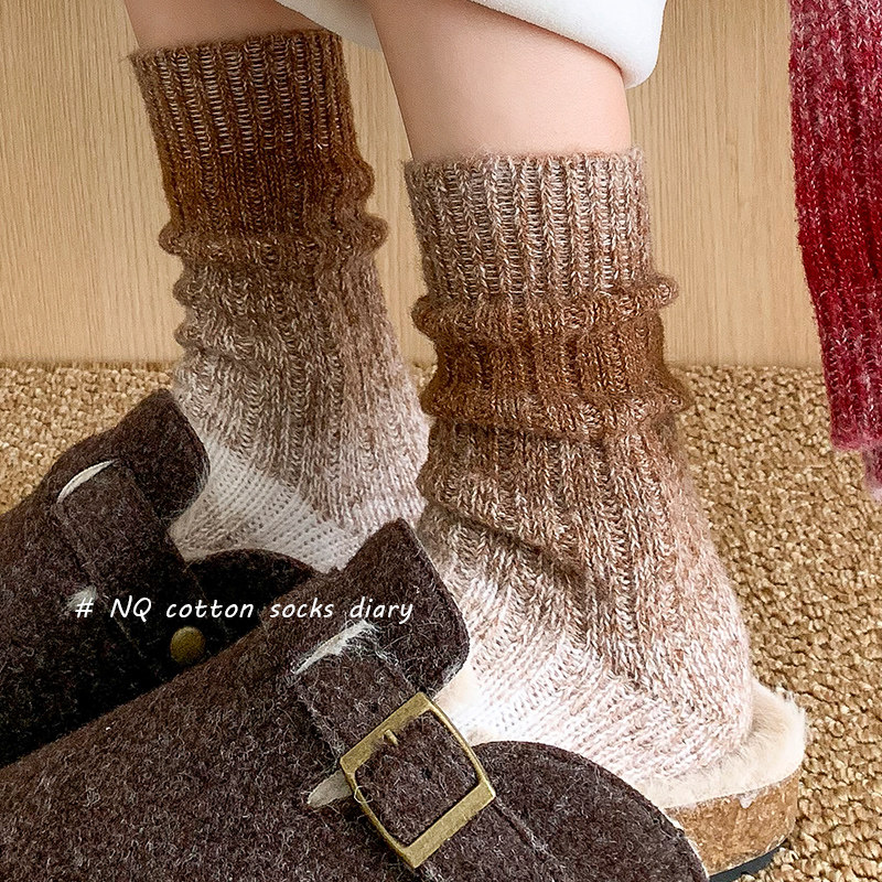 渐变色袜子女款中筒袜秋冬加厚羊毛袜欧美式女士长筒保暖棉堆堆袜