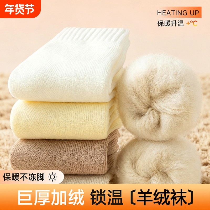 羊绒袜子女冬季中筒加绒加厚保暖毛圈老人袜冬天超厚美拉德羊毛冬