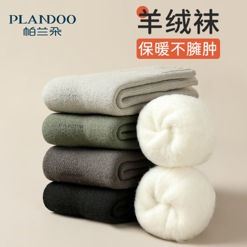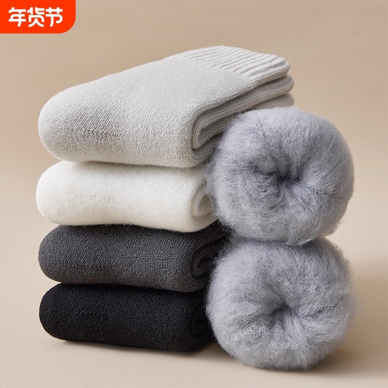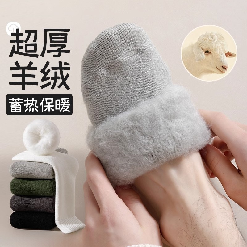 羊绒袜子男冬季保暖中筒袜加绒加厚羊毛袜睡眠地板袜冬天男士长袜