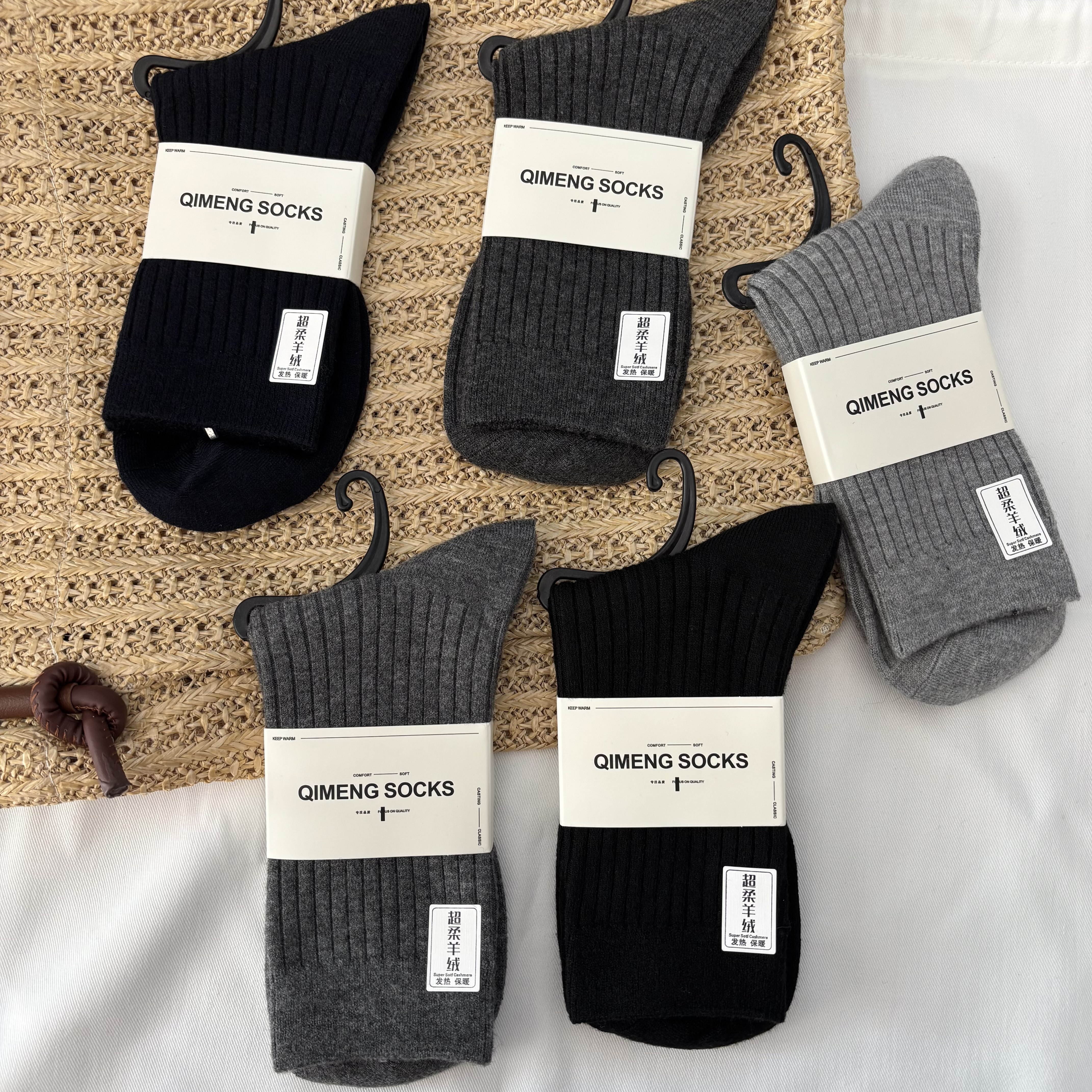 羊绒袜子男款秋冬季超厚中筒袜加绒加厚羊毛袜冬天男士保暖长筒袜