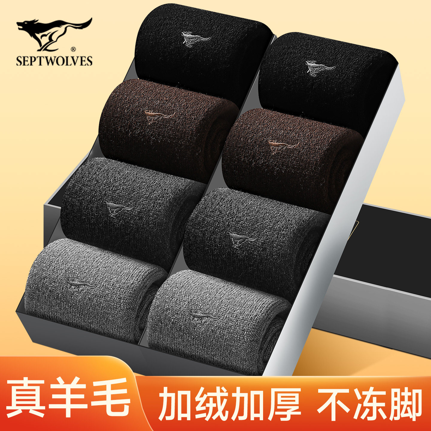 七匹狼袜子男款青少年长款加绒加厚羊毛袜秋冬新款男士保暖中筒袜