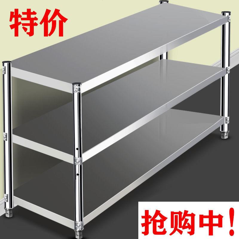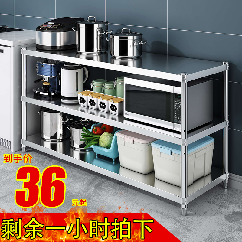 不锈钢货架厨房置物架3层加厚多功能储物架饭店厨具收纳微波炉架