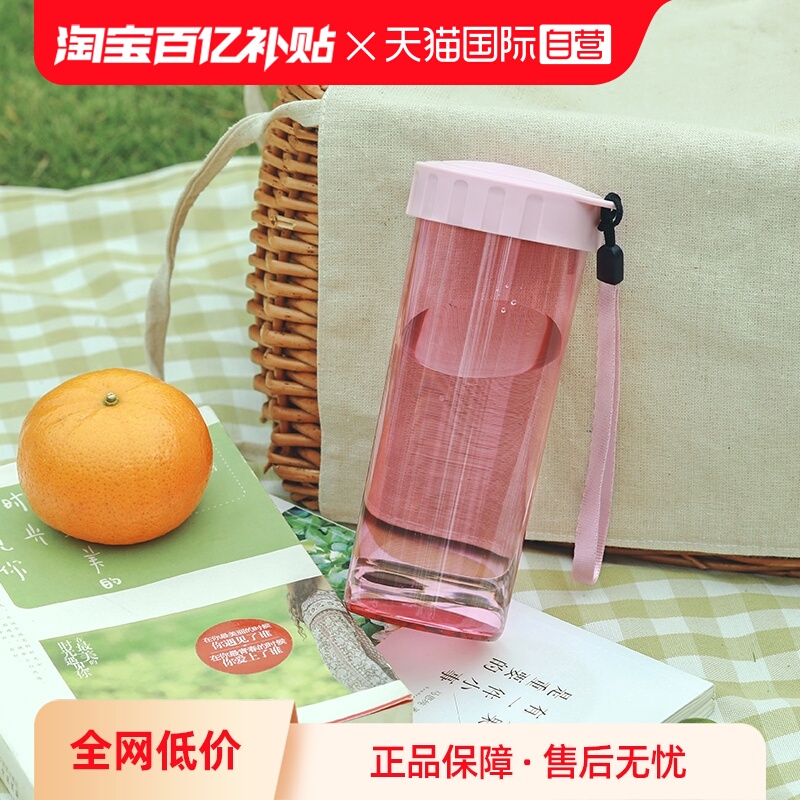 特百惠真品塑料防漏密封便携带提绳水杯经典莹彩随心杯430ML