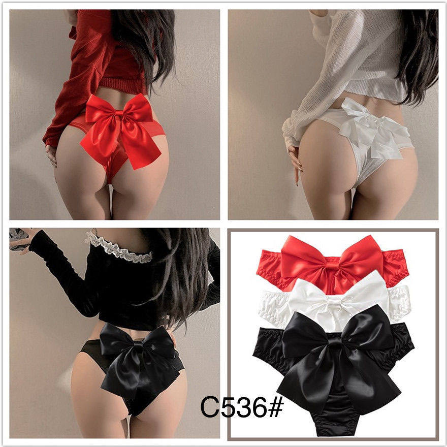 火辣诱惑纯欲性感后臀大蝴蝶结绸缎情侣趣味房事情调t裤丁字内裤