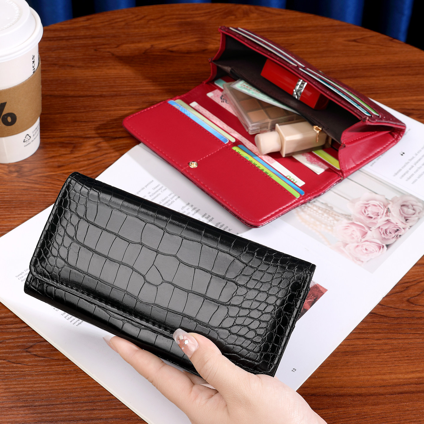 简约大气鳄鱼纹长款钱包女手机包大容量多功能折叠皮夹女式手拿包