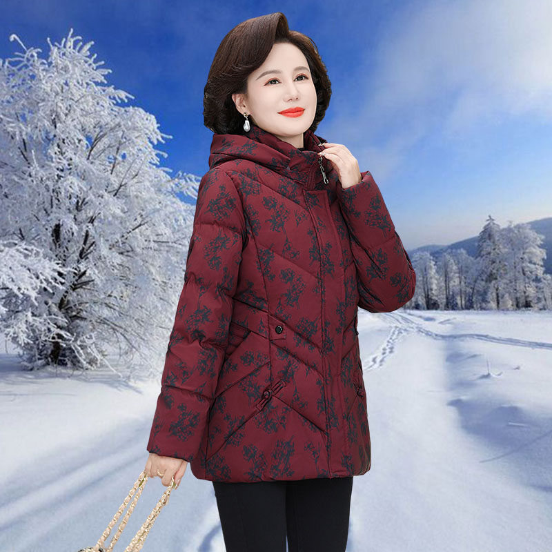 妈妈冬装羽绒棉服外套大码中老年人冬季花棉袄老人棉衣女2024新款