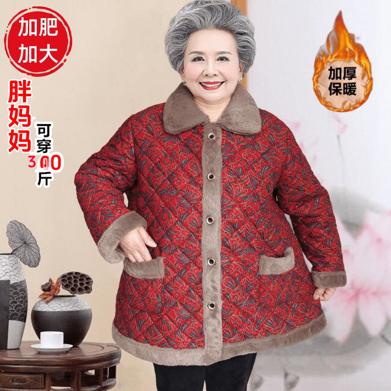 胖妈妈冬装加绒加厚棉袄奶奶加肥加大码羽绒棉服中老年女老人棉衣