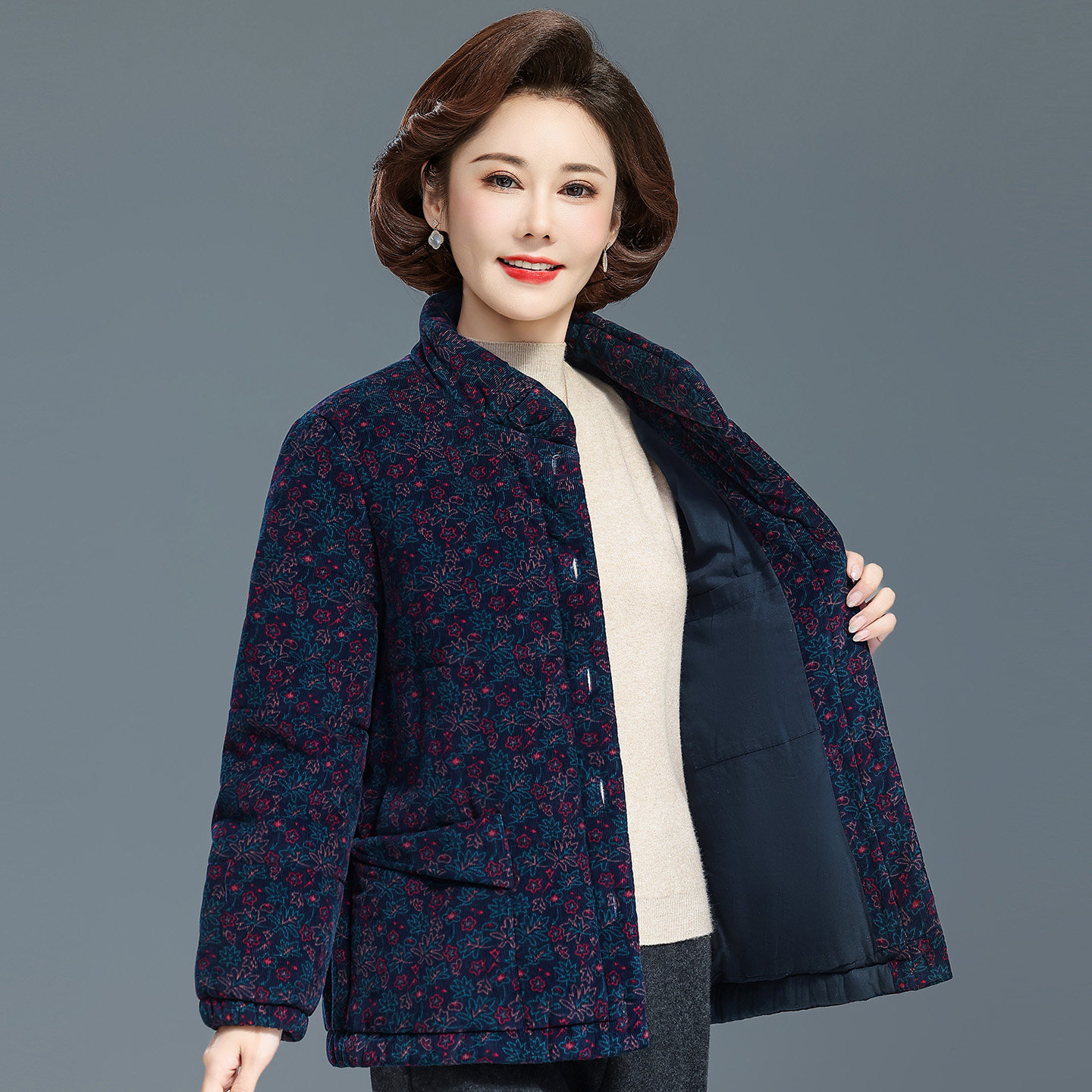 中老年花棉袄驼绒妈妈加绒加厚融绒暖意加肥大码奶奶老人棉衣启点