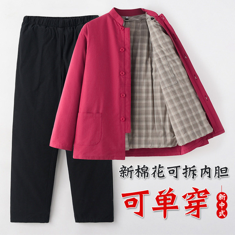 纯棉加厚手工棉花袄纽扣可拆卸复古唐装中老年棉衣老人扣子爸爸装