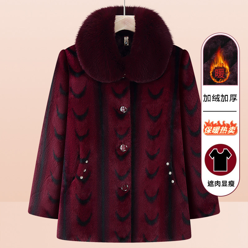 奶奶冬装外套中老年皮毛一体大衣女妈妈保暖上衣老人加绒加厚棉袄