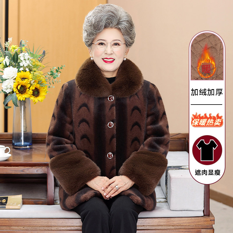 奶奶冬装加绒水貂绒外套女中老年貂皮大衣妈妈皮草棉袄老人棉衣服