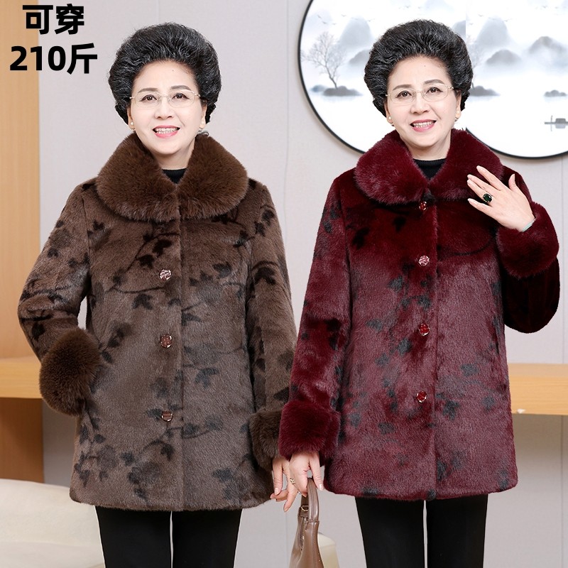 中老年人妈妈冬装皮草外套加肥加大码仿水貂绒大衣奶奶装老人棉衣