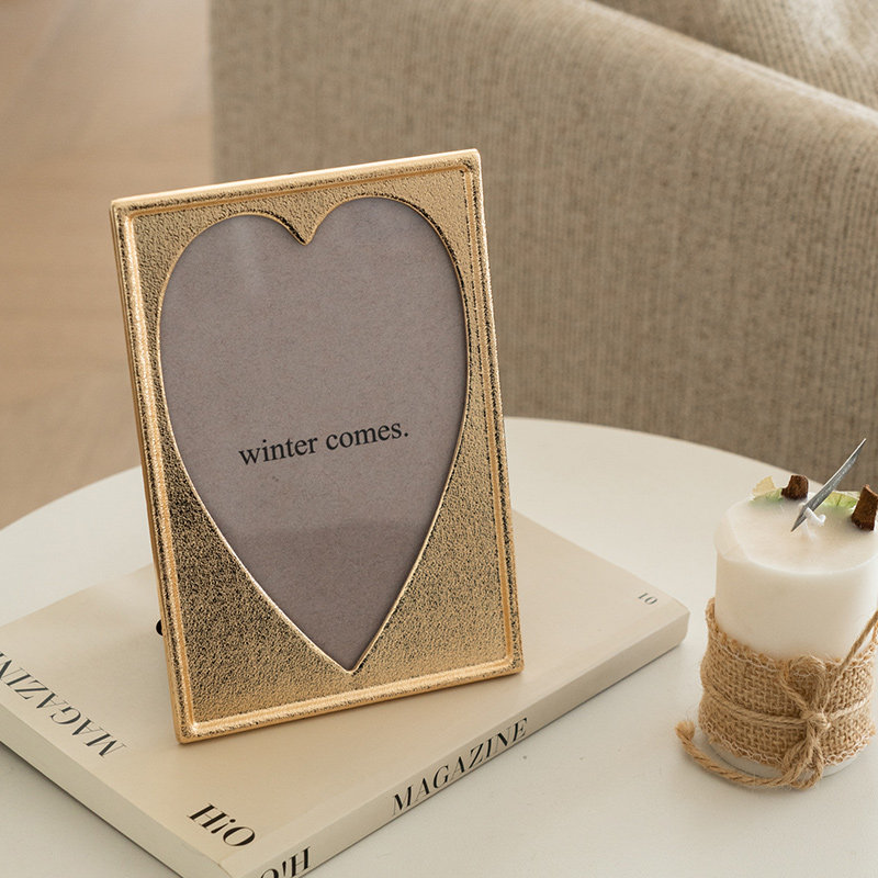 相框床头柜装饰美式金属高级摆台6寸相框金色法式轻奢装饰品摆件