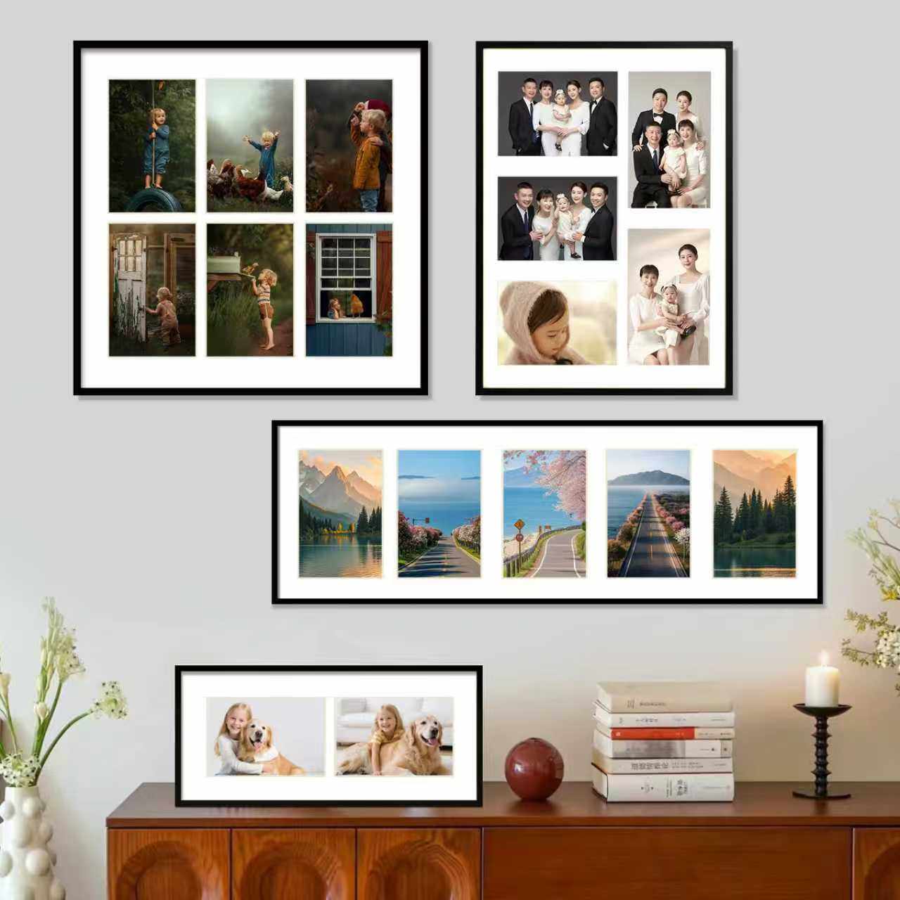 实木6寸相框桌面摆台二张三张照片挂墙多宫格礼物定制打印洗照片