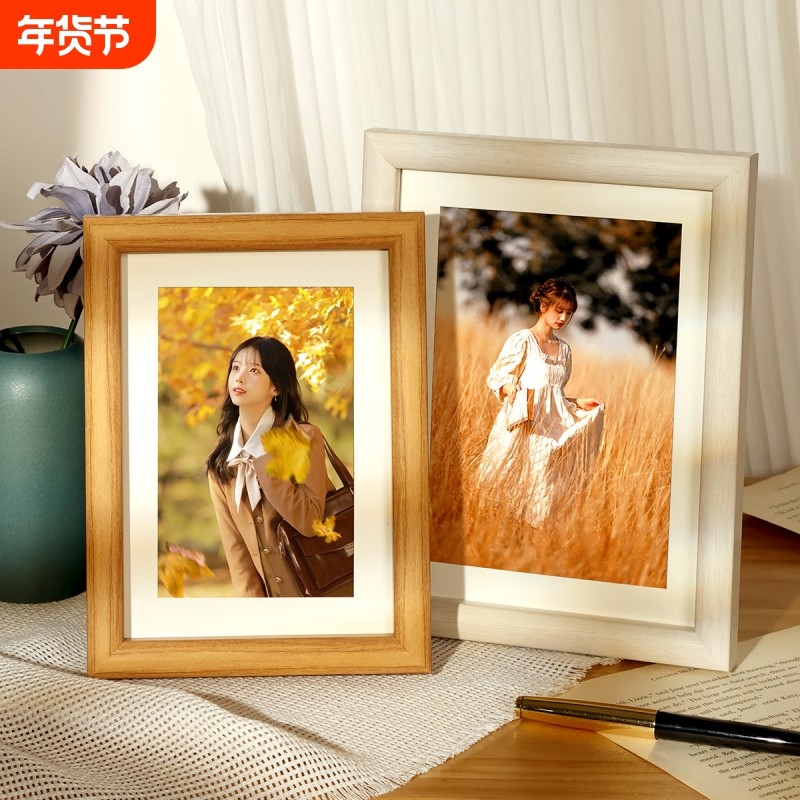 实木相框摆台洗照片做成相册高级感6寸7寸8加打印diy定制挂墙空框