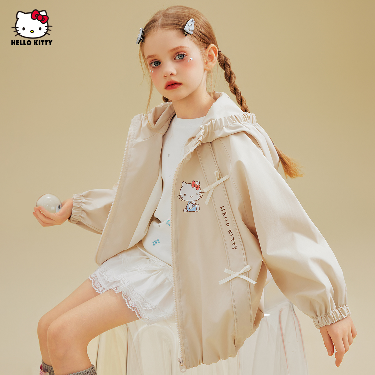 Hello Kitty女童春季外套2025新款卡通儿童春装上衣米白女孩衣服