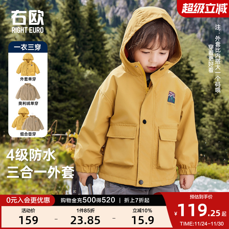 右欧童装儿童防风外套春秋装女童男童三合一时髦上衣纯色春季套装