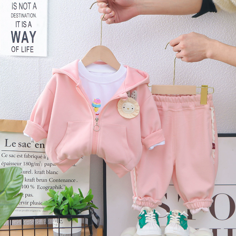 女童春季外套运动衣服装洋气女宝宝春秋装小女孩卫衣时髦三件套装