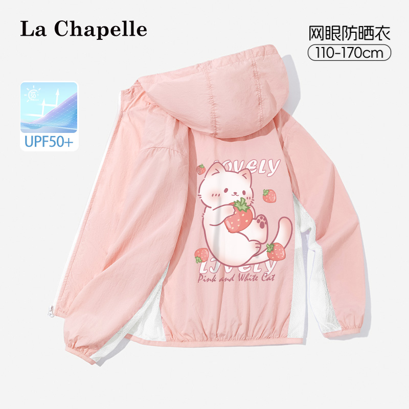 拉夏贝尔童装女童春季外套大童可爱小猫空调衫儿童夏季洋气防晒衣