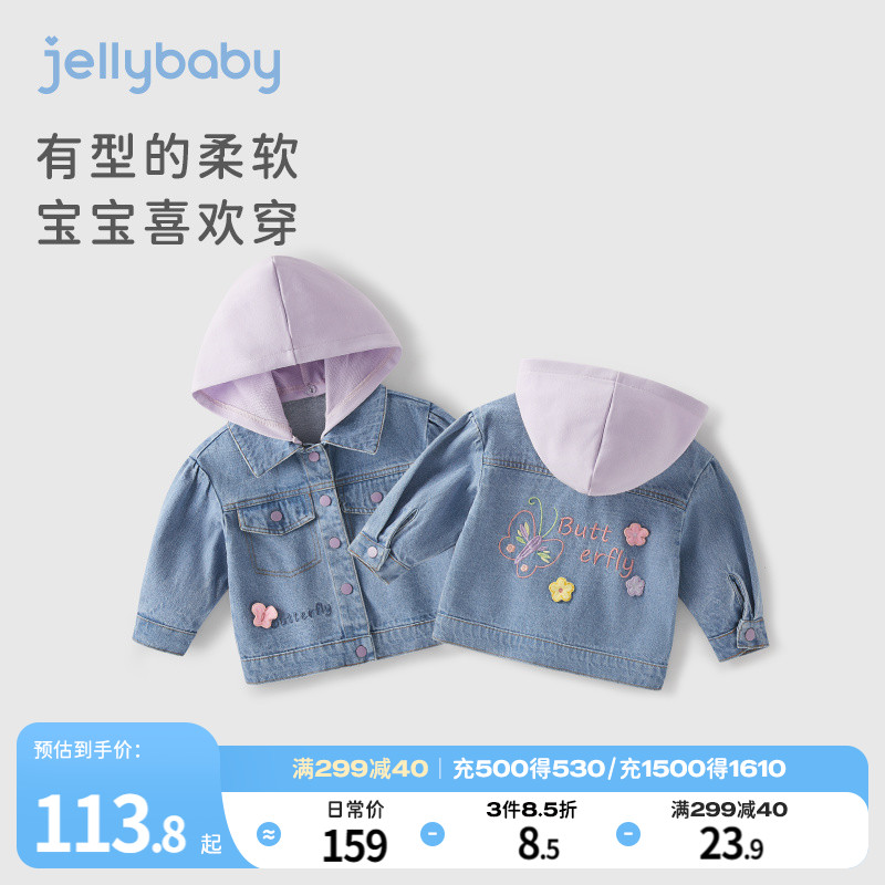 女童春季外套儿童连帽牛仔衫春秋小女孩时髦上衣两岁宝宝春装新款