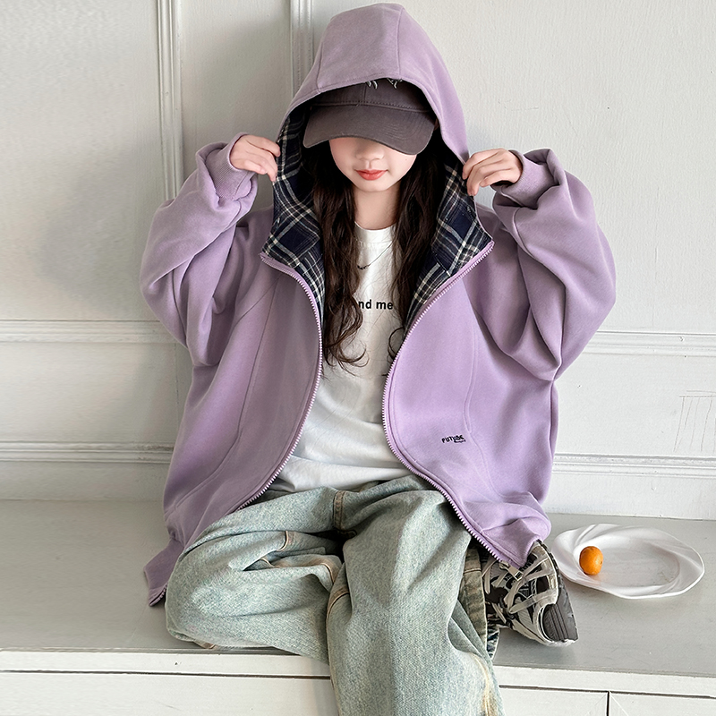 Yumi妈24S071儿童连帽卫衣外套春季童装男女童纯色休闲拉链上衣潮