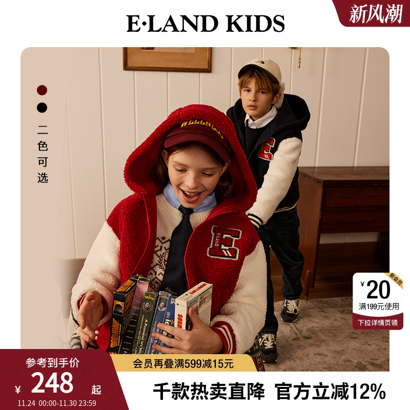 eland kids衣恋童装男女童外套25年春季新品大童仿羊羔绒连帽上衣