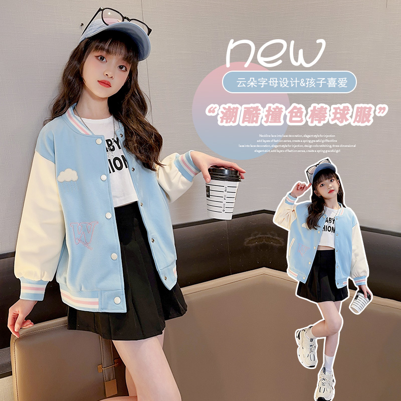 女童春季外套学院风上衣2025新款儿童洋气百搭中大童春装棒球服潮