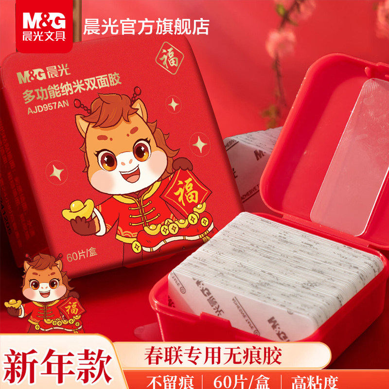 晨光马年纳米双面胶对联贴春联点点胶对联专用纳米胶新年春节年画场景布置胶带喜字强力胶不伤墙易撕不易留痕