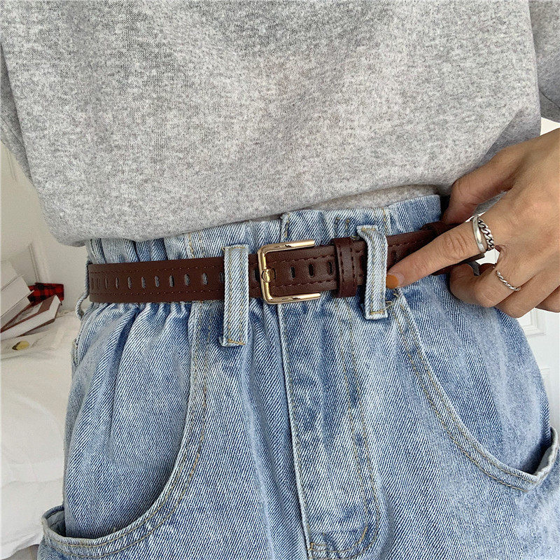 韩国流行一整条都是孔的皮带女INS风CHIC免打孔简约百搭腰带全孔