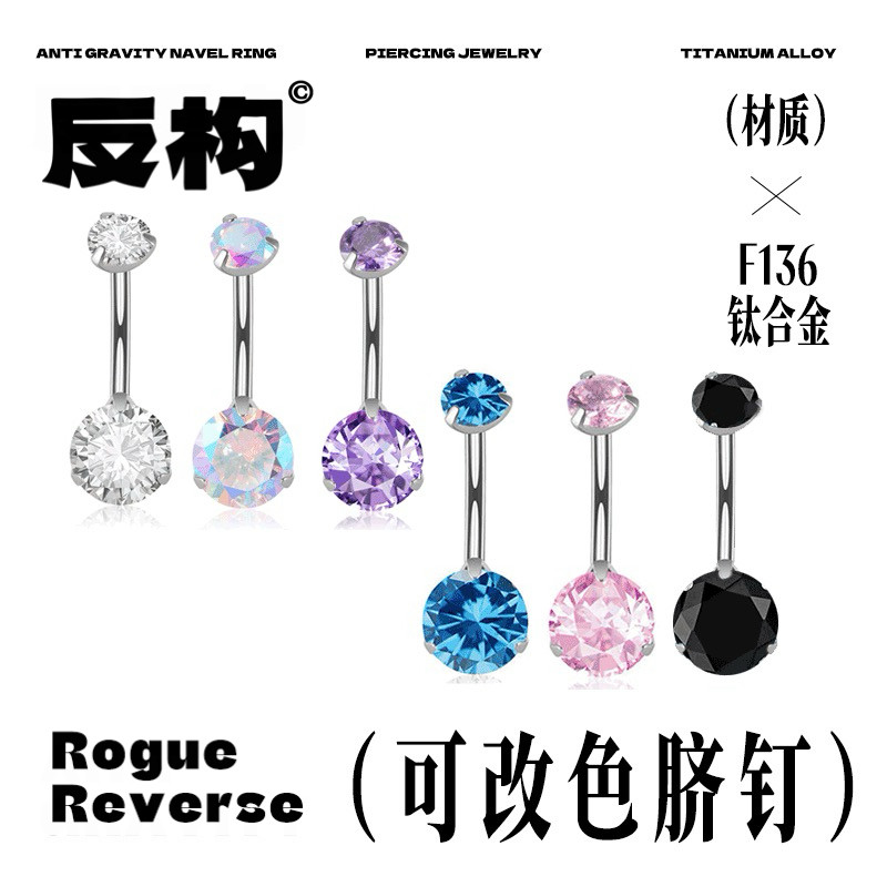 星川落子锆石脐钉女脐环肚脐钉f136爆闪钛合金钛钢防过敏养洞欧美
