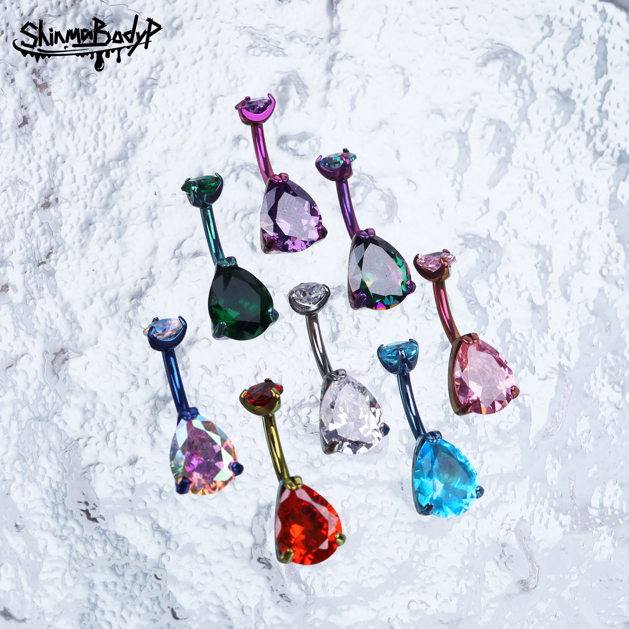 Shinma F-136高抛光钛合金水滴5A锆石肚脐钉肚脐环脐饰穿刺饰品