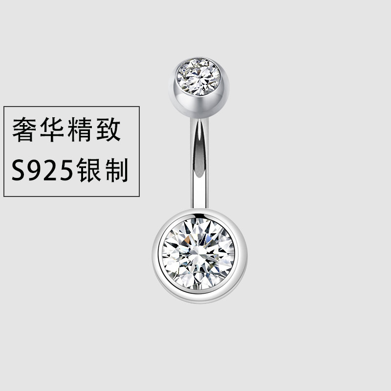 灵动肚脐钉S925纯银闪钻肚脐环女圆形防过敏网红穿孔饰品粗针1.5