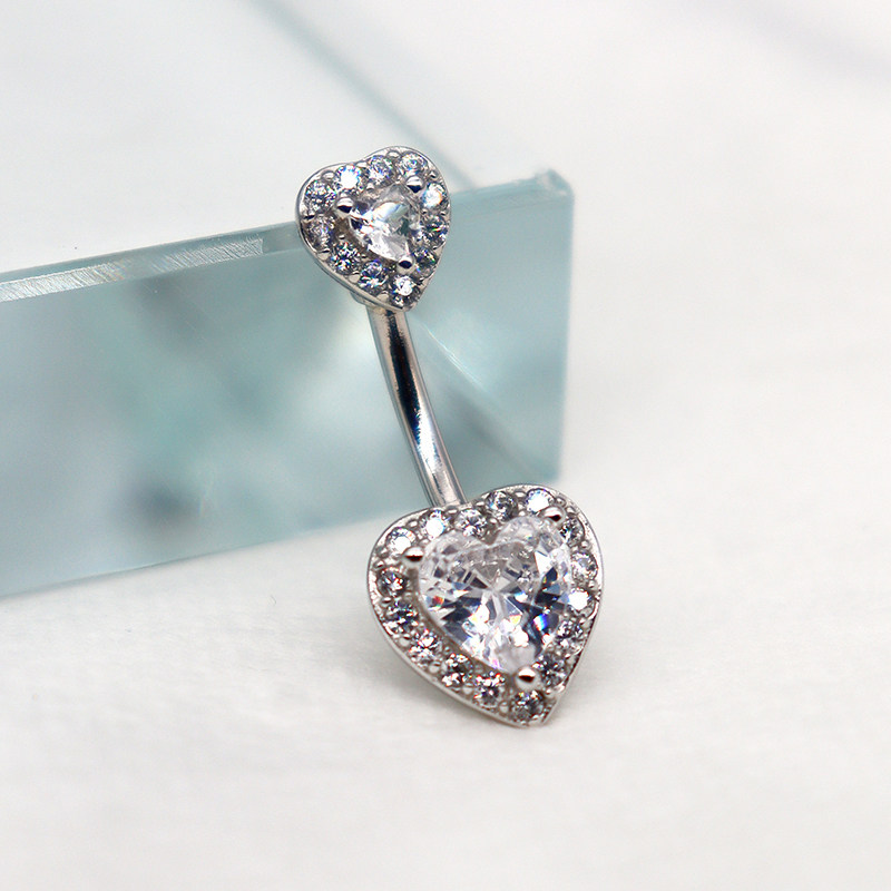 闪钻爱心925纯银肚脐钉性感欧美穿刺饰品防过敏粗针肚脐环酷女孩
