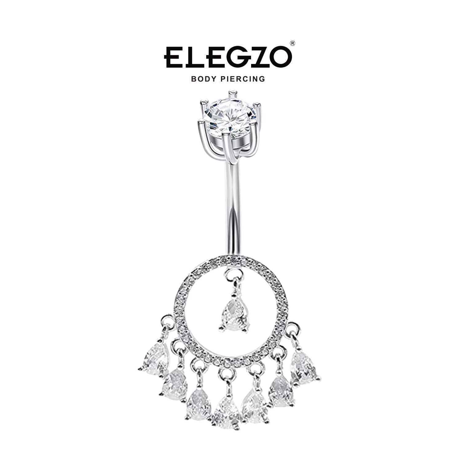 F136饰品短杆长针加长杆纯钛合金水滴锆石镶嵌闪钻肚脐环肚脐扣