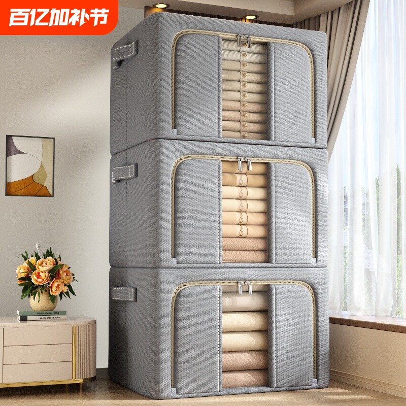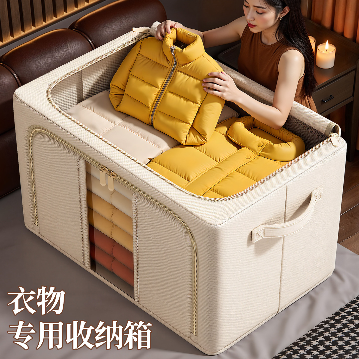 衣服收纳箱天山棉麻家用大容量衣柜装羽绒服衣物整理盒神器储物筐