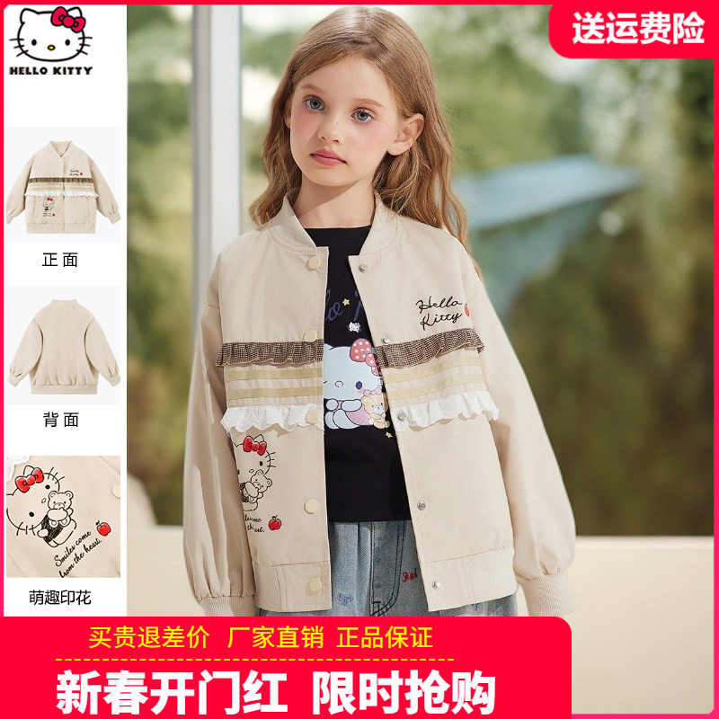 凯蒂猫童装女童棒球服儿童英伦风秋季外套女孩时尚春秋复古夹克衫