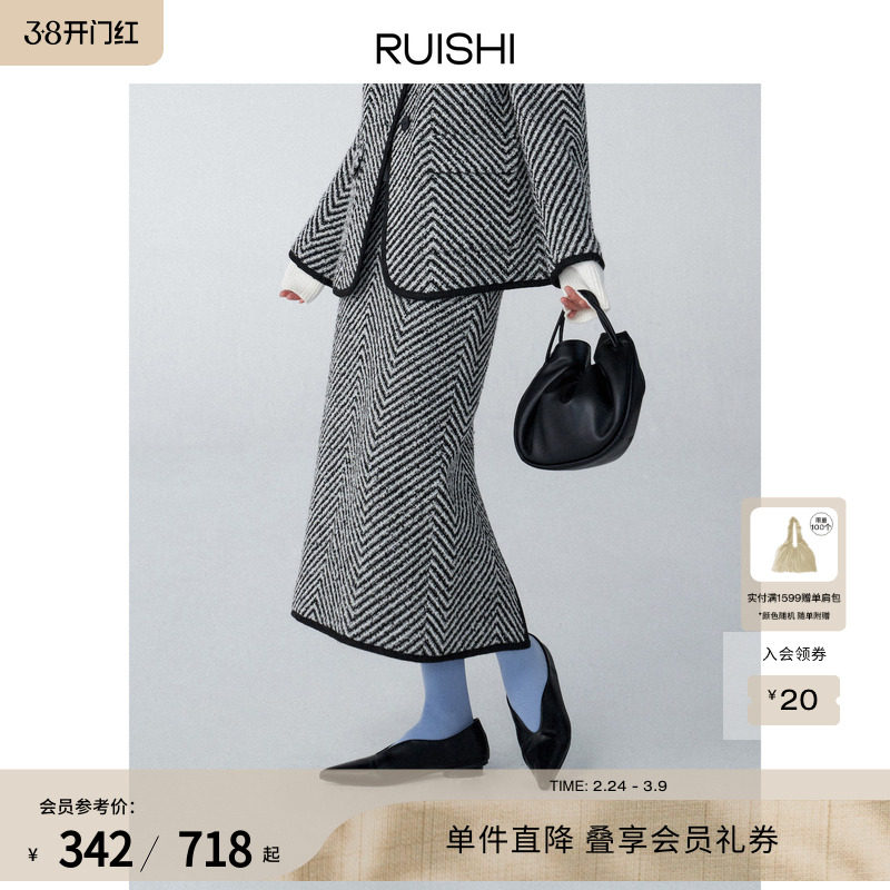 RUISHI芮时风格永存复古几何斑马纹时髦香风羊毛呢秋季外套女西装