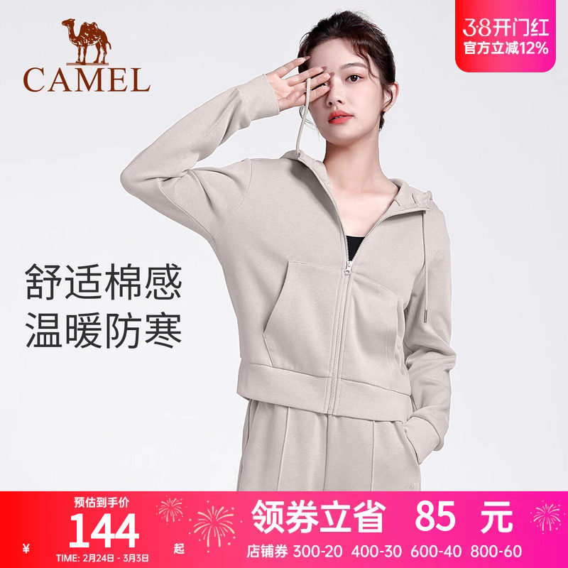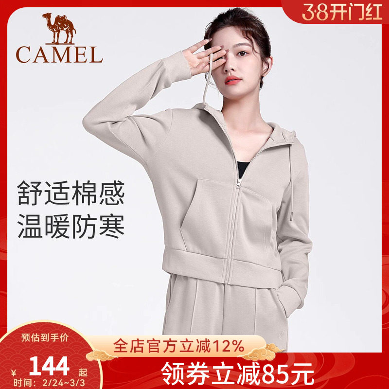 骆驼休闲运动服套装秋季外套女开衫连帽跑步上衣健身服瑜伽两件套