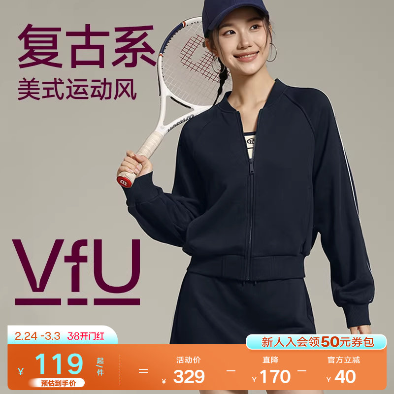 VfU宽松运动外套女2024秋季新款长袖户外感休闲跑步健身训练服