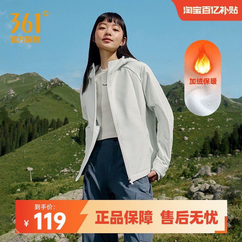 骆驼运动外套女秋季风衣外套连帽户外软壳登山防水防风薄绒夹克男