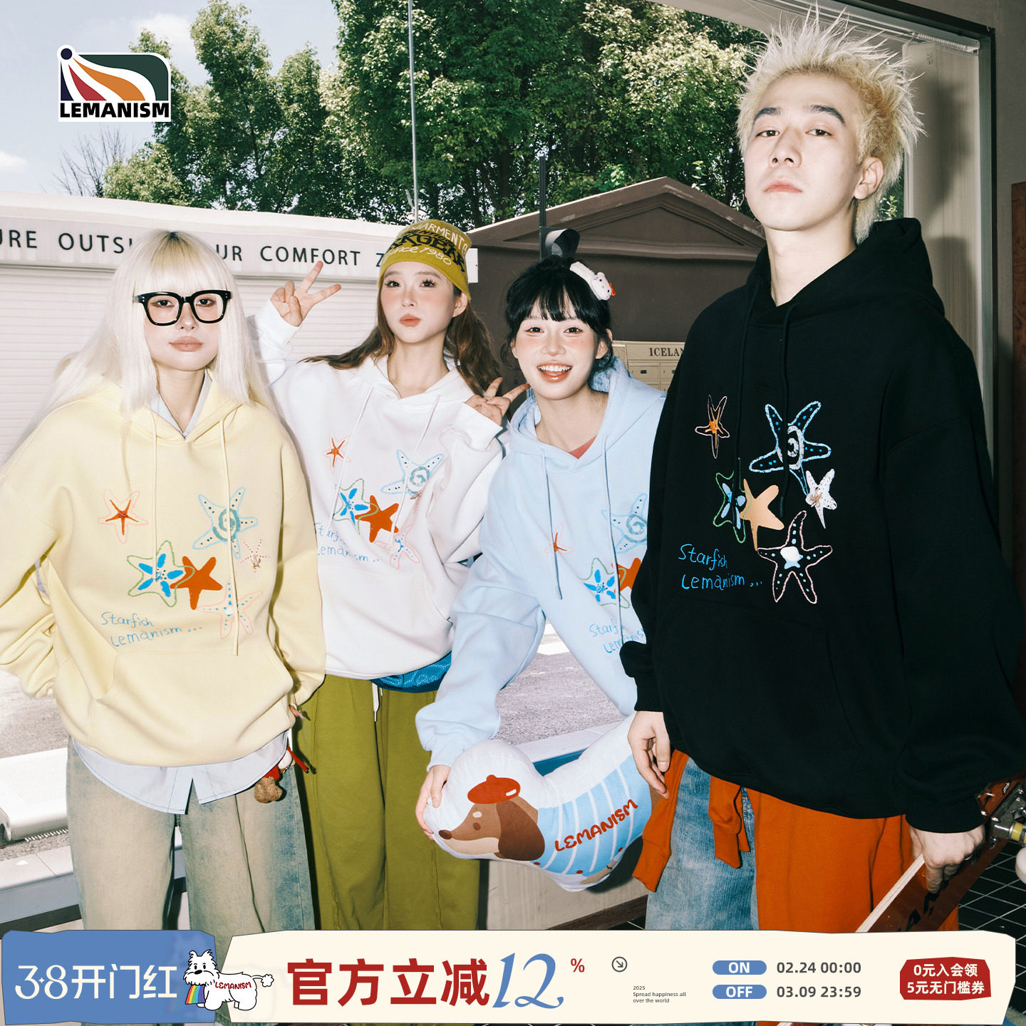 lemanism美式潮流海星字母印花连帽卫衣男情侣套头上衣秋季外套女