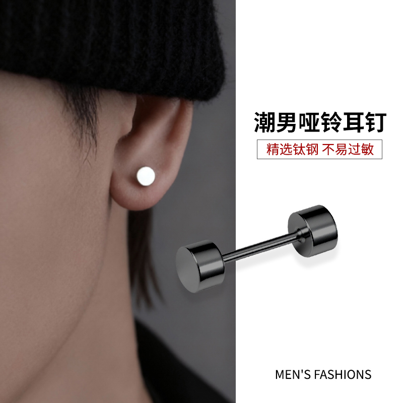 医用钛钢养耳洞耳钉男耳环螺丝拧扣耳骨钉防掉钛合金嘻哈潮流耳饰