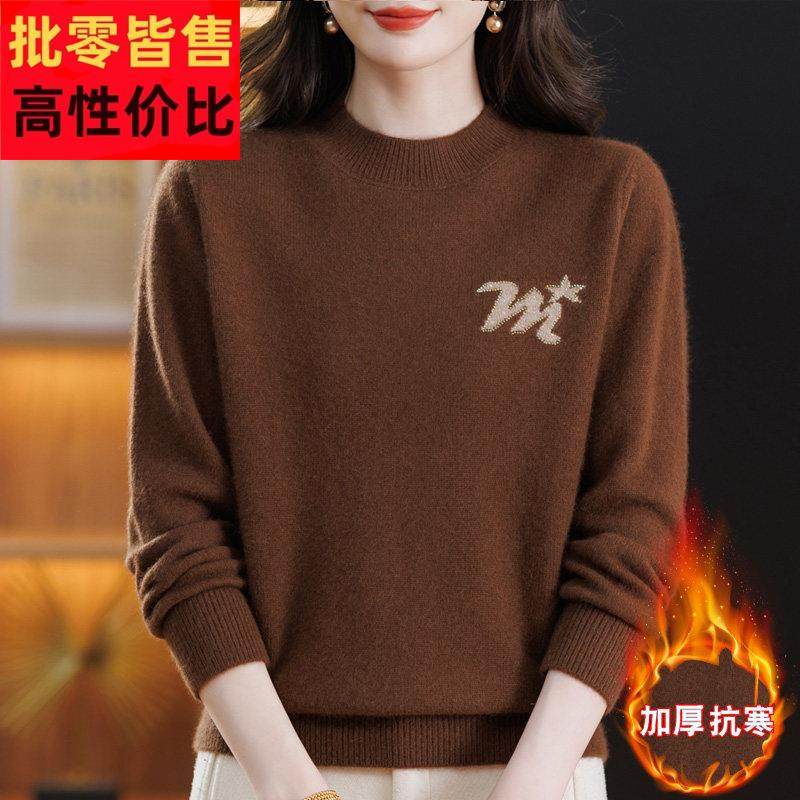 洋气妈妈半高圆领纯色羊毛绒衫女毛衣秋冬宽松加厚羊绒打底衫上衣
