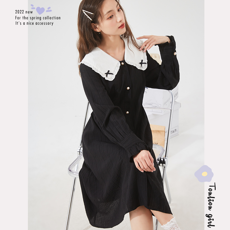 法式娃娃领连衣裙女2025早春季新款气质小个子洋气显瘦长袖裙子