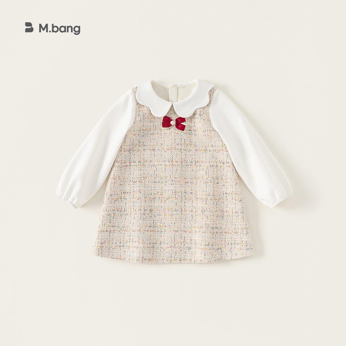 巴拉巴拉童装儿童连衣裙针织拼接女童春秋装学院娃娃领裙子套装潮